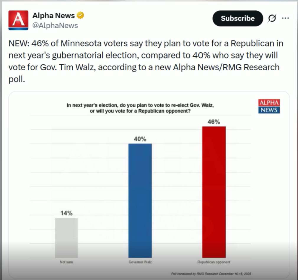 Here is a good overview of the DFL-Somali Fraud engulfing Minnesota by Dr. Steve Turley. Governor Walz's popularity is taking a hit, but the DFL in this state is so obsessed with hatred for Trump and his supporters, this may not matter. Unless we all get engaged for the 2026 election!
